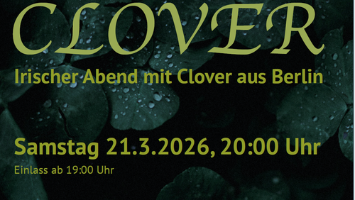 Nach dem großen Erfolg im letzten Jahr wollen wir es 2026 wiederholen: Herzlich willkommen zum Irischen Abend in der Kirche Zur Heimat am 21. März um 20.00 Uhr, Einlass ab 19.00 Uhr. Die mitreißende Musik von „Clover“ wird für Stimmung sorgen, lassen Sie sich das nicht entgehen! Rechtzeitiges Erscheinen ist empfehlenswert.