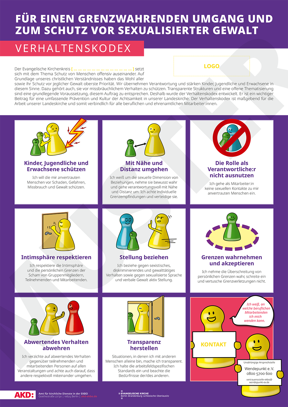 Aus diesem Grund hat der Kirchenkreis Teltow-Zehlendorf ein Präventions- und Kriseninterventionskonzept verabschiedet. Es gilt allen, die bei uns beruflich oder ehrenamtlich arbeiten oder sich uns anvertrauen. Es gilt besonders den Menschen, die aufgrund ihres Lebensalters, ihrer Gesundheit, ihrer emotionalen oder monetären Abhängigkeit auf unseren Schutz angewiesen sind.